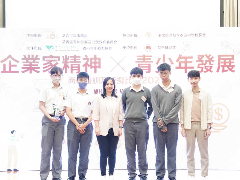 【企業家精神 X 青少年發展 – 商管培訓及模擬比賽2023】 由葵青民政事務處及葵青區青年發展及公民教育委員會主辦,荃灣葵涌及青衣區中學校長會協辦。是次活動旨在培養青少年的正向價值觀,並透過4天的培訓課程及比賽,讓學生學習電腦模擬遊戲結合企業營運知識及技巧,從而聯繫如何詮釋人生目標以及社會責任和企業管治概念。 得獎組別可獲得影音禮券及證書以示鼓勵 冠軍:價值8,000 亞軍:價值6,000 季軍:價值4,000